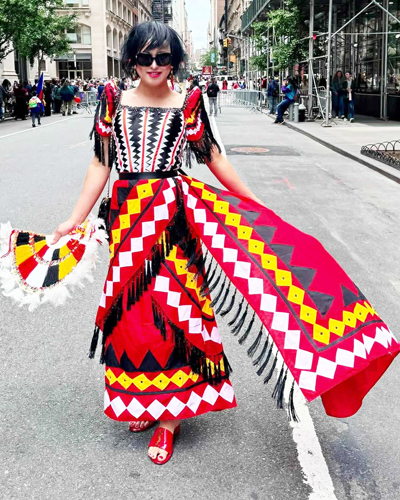 "This neo-ethnic collection, which features the tnalak, inaul, and other indigenous materials and styles, signifies a woman who always believes in herself, is determined to achieve her dreams in life, and can show to the world that she is versatile," says Ador.